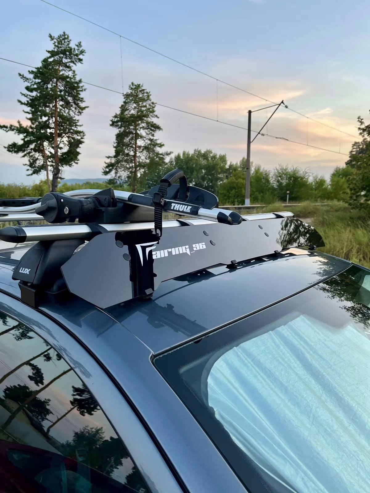 Фейринг (файринг, обтекатель, спойлер, ветровик, антикрыло, дефлектор или аэродинамическая панель) — это плоская и тонкая панель для передней части багажника на крыше автомобиля. Она снижает сопротивление воздуха, устраняет гул и свист, уменьшает расход топлива. Без фейринга поперечные дуги багажника создают турбулентность, увеличивая нагрузку на двигатель и ухудшая аэродинамику.